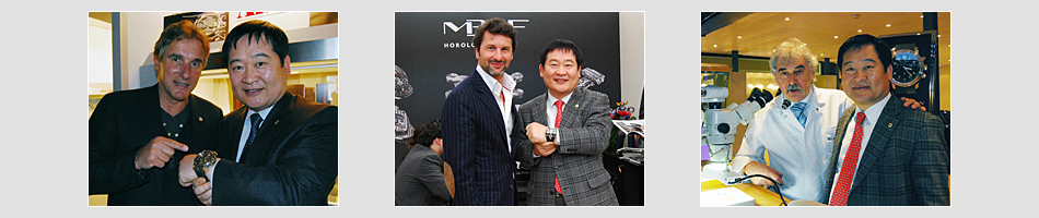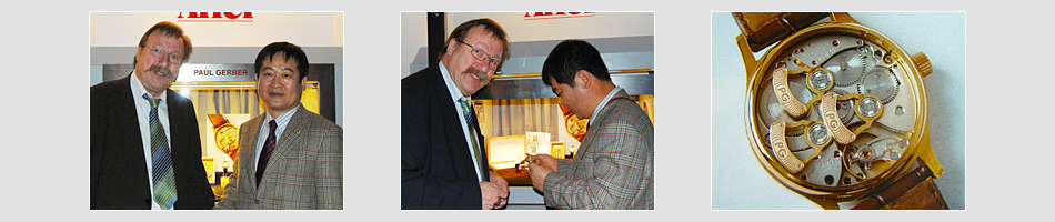 | He is having technical discussion with Paul Gerber, the Swiss Meister independent watch maker, regarding 3 rotors first developed globally. |
